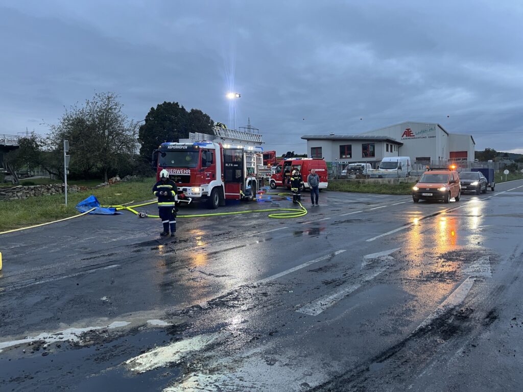 Bis zu deren Eintreffen wurde gemeinsam mit der Straßenmeisterei die ausgetretenen Betriebsmittel gebunden und die Unfallstelle gereinigt.